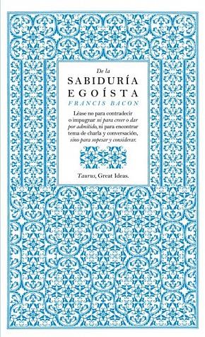 Ideas que han cambiado el mundo A lo largo de la historia, algunos libros han cambiado el mundo. Han transformado la manera en que nos vemos a nosotros mismos y a los demás. Han inspirado el debate, la discordia, la guerra y la revolución. Han iluminado, indignado, provocado y consolado. Han enriquecido vidas, y también las han destruido. Taurus publica las obras de los grandes pensadores, pioneros, radicales y visionarios cuyas ideas sacudieron la civilización y nos impulsaron a ser quienes somos. Los célebres escritos de Francis Bacon sobre temas que van desde la ira y la ambición, al matrimonio, la riqueza, la envidia, el imperio o la sabiduría, lo consagraron como uno de los padres fundadores del pensamiento científico moderno, con su rechazo de la superstición y su énfasis en las pruebas y la experimentación, la investigación y la argumentación racional. Comentarios sobre la colección Great Ideas: «De veras que la edición es primorosa y pocas veces contenido y continente pueden encontrarse mejor ensamblados y unidos. ¡Qué portadas! Para enmarcar. [...] Ante las Great Ideas, solo cabe quitarse el sombrero. ¡Chapeau!» ABC «Taurus propone un doble envite con este lanzamiento. Por un lado aumenta su compromiso con el ensayo; por otro, recupera el gusto por la estética. A los volúmenes se les ha proporcionado una portada delicada y cuidada (copian el original británico) que invita a la lectura.» La Razón «Un fenómeno editorial.» The Guardian «Aparte de los contenidos, en general muy bien elegidos, son tan bonitos que si los ven seguro que cae alguno.» El País «Ideas revolucionarias, crónicas de exploraciones, pensamientos radicales# vuelven a la vida en estas cuidadísimas ediciones, muy atractivas para nuevos lectores.» Mujer Hoy «Grandes ideas bien envueltas. De Cicerón a Darwin, esta colección entra por los ojos.» Rolling Stone «Original y bella iniciativa la emprendida por Taurus con su colección Great Ideas.» Cambio 16 «Hay libros inmortales, libros únicos que contienen pensamientos y reflexiones capaces de cambiar el mundo, tesoros en miniatura reagrupados en la colección Great ideas.» Diario de León