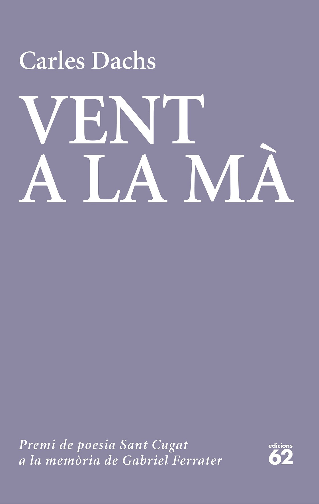 Vent a la mà, el tercer volum de versos de Carles Dachs (Santa Eugènia de Berga, 1987), ha obtingut el 19è premi de poesia Sant Cugat a la memòria de Gabriel Ferrater. És un llibre que deixarà empremta en els lectors per la riquesa plural del conjunt (dividit en tres parts de factura molt diversa), pel rigor formal que l'articula i per la força poètica amb què s'hi expressen les emocions i les idees.