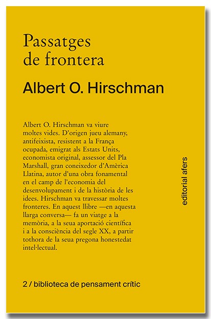 Albert O. Hirschman va viure moltes vides. D'origen jueu alemany, antifeixista, resistent a la França ocupada, emigrat als Estats Units, economista original, assessor del Pla Marshall, gran coneixedor d'Amèrica Llatina, autor d'una obra fonamental en el camp de l'economia del desenvolupament i de la història de les idees. Hirschman va travessar moltes fronteres. En aquest llibre —en aquesta llarga conversa— fa un viatge a la memòria, a la seua aportació científica i a la consciència del segle XX, a partir tothora de la seua pregona honestedat intel·lectual.