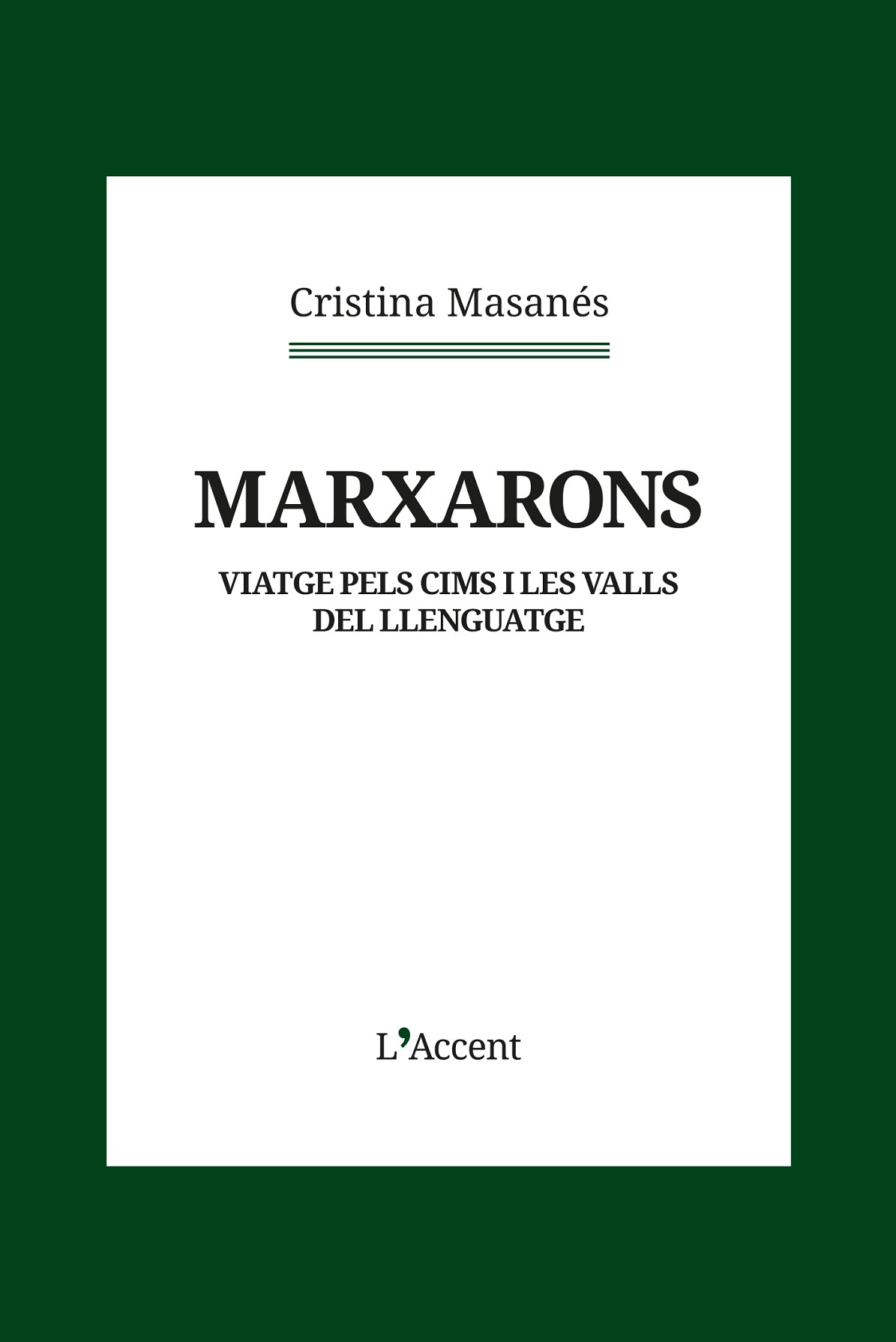 Aquest és un llibre sobre el misteri de la parla humana. Un viatge lingüístic a través de la figura del pare de l’autora, persona apassionada per l’alpinisme, que, després de patir un vessament cerebral, va quedar sense parla. Va començar aleshores una ascensió per cims i muntanyes inabastables per intentar recuperar les paraules. Quina cohesió pot tenir el món interior si no es disposa de significants? En quina desolació mental va viure el pacient que es va inventar un verb, “marxarons”, mentre tot això va durar? Si la veu interior s’articula amb la gramàtica, com ho fa quan l’ha perdut? I més encara, com es construeix la consciència sense paraula?