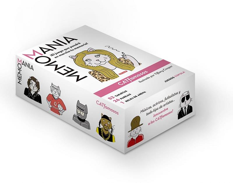 Este juego propone encontrar las parejas de famosos en forma de gato para ejercitar la memoria y la agilidad mental. Apto para jugar solo o en familia, es un juego simple: cada jugador pone boca arriba dos tarjetas, las memoriza y les da la vuelta. A partir de ahí, los jugadores tendrán que encontrar las parejas de tarjetas idénticas.