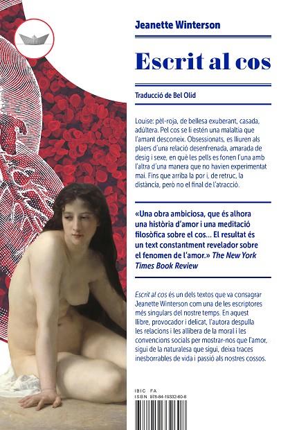 Louise: pèl-roja, de bellesa exuberant, casada, adúltera. Pel cos se li estén una malaltia que l’amant desconeix. L’obsessió fa que es lliurin als plaers d’una relació desenfrenada, amarada de desig i sexe, en què les pells es fonen l’una amb l’altra d’una manera que no havien experimentat mai. Fins que arriba la por i, de retruc, la distància, però no el final de l’atracció. Escrit al cos és un dels textos que va consagrar Jeanette Winterson com una de les escriptores més singulars del nostre temps. En aquest llibre, provocador i delicat, l’autora despulla les relacions i les allibera de la moral i les convencions socials per mostrar-nos que l’amor, sigui de la naturalesa que sigui, deixa traces inesborrables de vida i passió als nostres cossos.