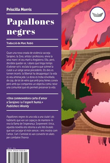 "Quan una nova onada de violència sacseja Sarajevo, la Zora, artista i professora, envia la seva mare i el seu marit a Anglaterra. Ella, però, decideix quedar-se, i abans que tingui temps d’adonar-se’n, esclata la guerra que sotmet la ciutat a un setge sense precedents. Els dies es tornen incerts: la llibertat ha desaparegut i la vid es veu amenaçada. La dona es troba envoltada, de cop, de tot de veïns que amb prou feines coneix però amb qui comparteix un objectiu comú: teixir una comunitat que els permeti preservar la vida. Papallones negres és una oda a una ciutat i als habitants que van ser capaços de mantenir-hi viva la flama de l’esperança. Sorprenent i lírica, aquesta novel·la ens retorna a uns fets brutals que van sacsejar el món sencer, i ens mostra com l’amor, l’art i l’amistat es van convertir en aliats per combatre l’horror."