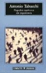 Una Toscana secreta y embrujada, una estación de la Riviera, una Lisboa baudelairliana, un rally de coches de época, un perseguidor implacable de aire distinguido en un tren de Bombay a Madrás. Los cuentos de Tabucchi parecen, en una primera lectura, aventuras existenciales, retratos de viajeros irónicos y desesperados. Pero la aparente sintonía entre lo real y lo narrado se transforma de golpe en turbación y desconcierto. A modo de oblicuos «cuentos filosóficos», las historias de Tabucchi se convierten en una reflexión en torno al azar y al riesgo de escoger, una tentativa de observar los intersticios que atraviesan el tejido de la existencia. En las páginas de Tabucchi planea una inquietud metafísica que evoca Piero della Francesca, Giorgio De Chirico y Pirandello. Pero este escritor, que ama los personajes excéntricos y las vidas fracasadas, carga sus enigmas con una luz extraña: sus jeroglíficos «policíacos» son las pesquisas de un investigador que no busca respuestas, sino un mensaje, una señal, una aparición.