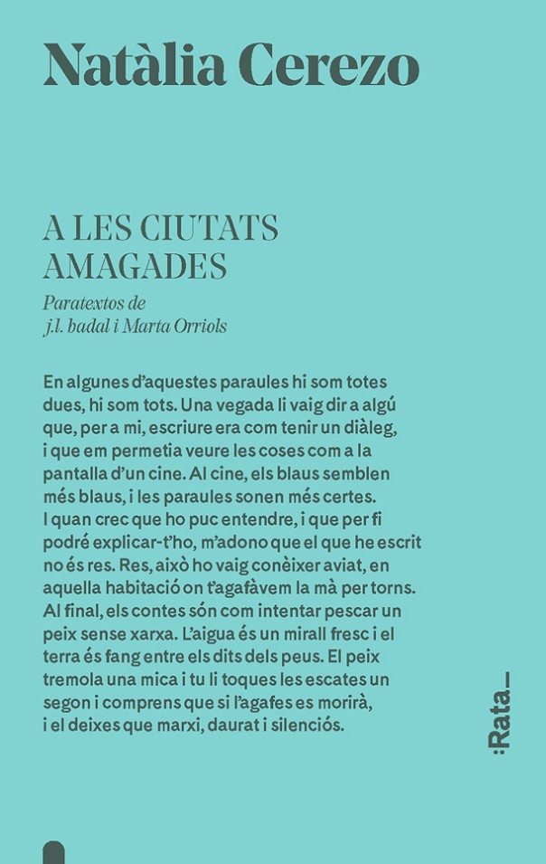 Hi ha una estranyesa minimalista que queda sostinguda en l'ànima de qui llegeix les històries que Natàlia Cerezo recull en el seu primer llibre de contes, A les ciutats amagades. Una intimitat oculta, que s'intueix intensa en tots els seus personatges, solitaris i profunds, que es defineixen per tot el que callen i el que han perdut. Sobreviuen, i ella ho trasllada al paper. Ens explica la vida que transcorre en un estiu calorós i plàcid, la de l'entorn rural i tranquil on sembla que mai passa res, la dels veïns que fan veure que no es coneixen però es desitgen amb passió, la de la infantesa interrompuda per la pèrdua i la malaltia, la de pares que no van saber ser fills i fills que no voldran ser pares, la dels mesos transcorreguts en ciutats que ens seran sempre alienes.