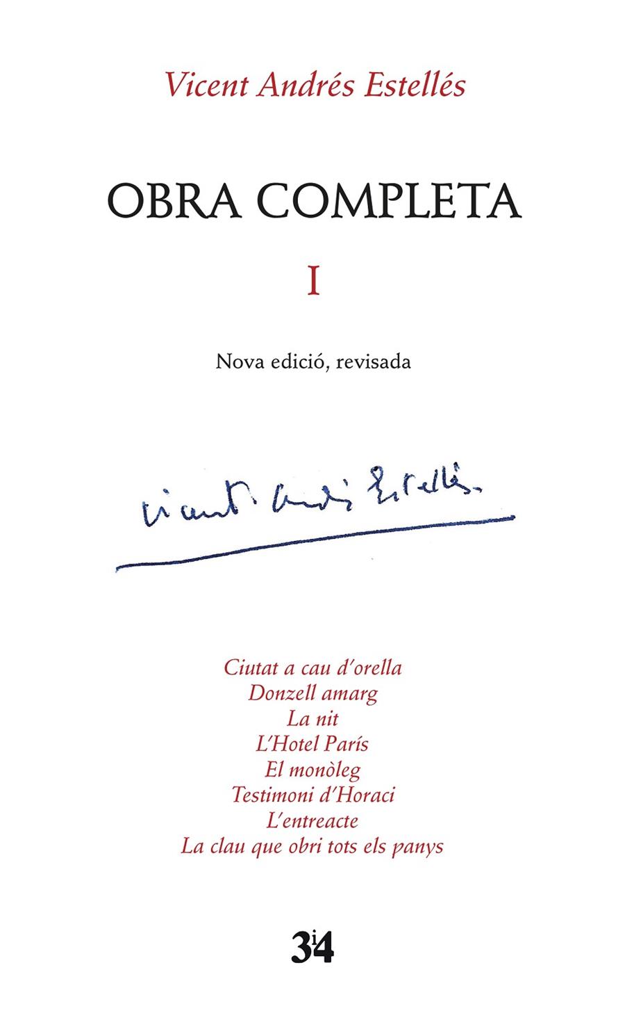 Aquesta Obra Completa -Nova edició, revisada- constitueix un nou projecte d'edició de l'obra estellesiana que conté estudis introductoris, un treball de reorganització cronològica de les obres i d'edició filològica dels poemes estellesians. En aquest primer volum s'apleguen les següents obres: Ciutat a cau d'orella, Donzell amarg, La nit, L'Hotel París, El monòleg, Testimoni d'Horaci, L'entreacte, La clau que obri tots els panys.